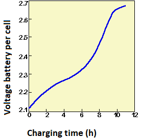 The graph below is showing how a lead acid battery charges.